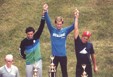 In 1984 we had a race called the Tour of Long Island. It was a four day, seven stage Pro/Am stage race that circled Long Island. Fred Mengoni (lower left) put up the cash. The photo above shows the overall winners. First is Ron Haymen, a Canadian Pro. Second is (left) Louis Garneau and third was local boy (right) Eric Zaltas. Eric cleverly won the first stage and then valiantly held on for third place.