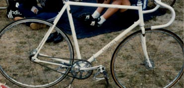 Like me, Andy Fellenz fooled around with frame building. I think he built around 8 or 10 bikes for himself and his friends. This is a track bike that he built for himself. Instead of putting his own name on the down tube he chose the name "Xanthus." I think that was the name of Zeus's horse. Andy took a fair amount of ribbing over that name. You didn't want to get Andy mad though because it would make him go to the front and set a tempo that would make you regret it.