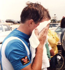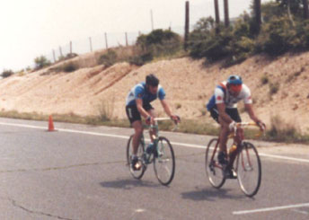 The rain finally stopped but it remained windy and raw. There were only about 12 riders left. The race came down to a break-away of Hewitt Thayer and Tom Donahue. Incidentally both of these guys rode for Toga as some point in their careers.