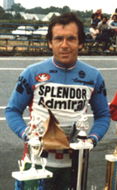 Jimmy Keogh was a very clever rider who came to New York from Ireland. One of his specialties was riding a Miss & Out and picking the rider who was going to be called out before it happened. He was a real fun guy. For several years Jimmy was the coach of the Toga Team. Lenny Prehiem who sponsored the team was generous to his riders but very demanding. The riders were greatful to Lenny but their true allegiance was to Jimmy Keogh. One day in Central Park the team didn't perform up to Lenny's expectations in a particular race. Lenny was giving the whole team a good tongue lashing right in front of all the spectators at the finish line. Jimmy had enough and, accompanied by some choice words, threw his team bike down in the road and a his jersey on top of it. Immediately all the Toga riders did the same. There was a huge haystack of green and yellow bikes and jerseys in the middle of the road. The whole team walked. It was great for my club (GBSC) because most of the Toga riders came over to us for the rest of the season. ROLLER RACING